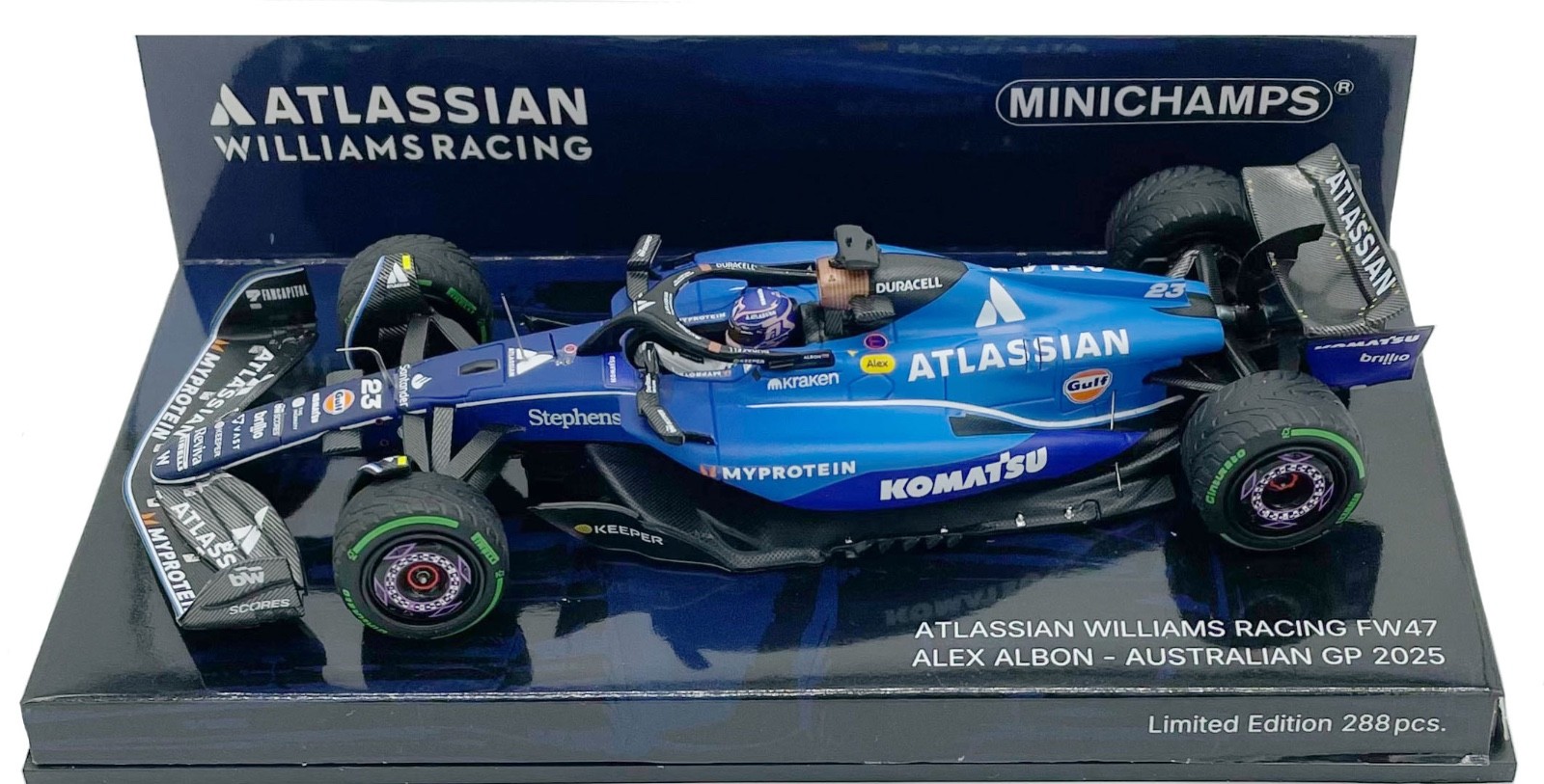 Minichamps (417250123) Echelle : 1/43 |  | Modèle : Williams FW47 Mercedes Année : 2025 Pilote : Alexander Albon  Version : Australian GP Ed. limitée : 288 ex.