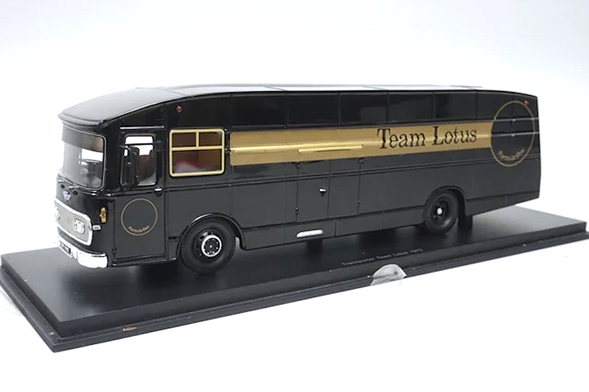 Spark (S1774) Echelle : 1/43 |  | Modèle : Lotus AEC truck Ford Cosworth Année : 1973 Pilote : Emerson Fittipaldi / Ronnie Peterson  Version : Texaco Star Team Lotus F2