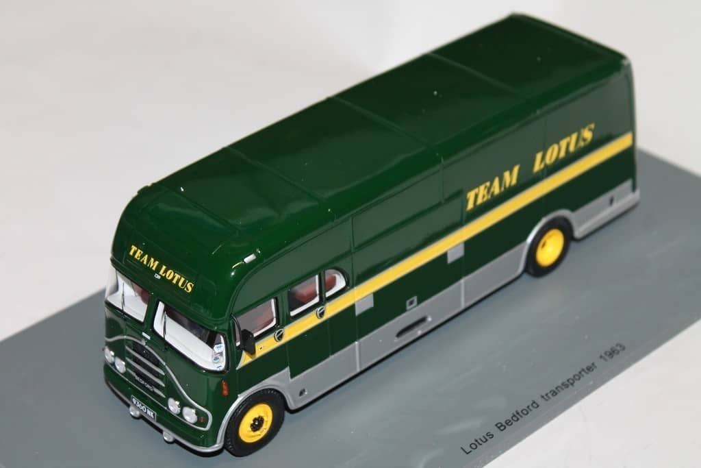 Spark (S6003) Echelle : 1/43 |  | Modèle : Lotus Bedford transporter Climax Année : 1961 Pilote : Jim Clark / Trevor Taylor  Version : Team Lotus 1961-1963