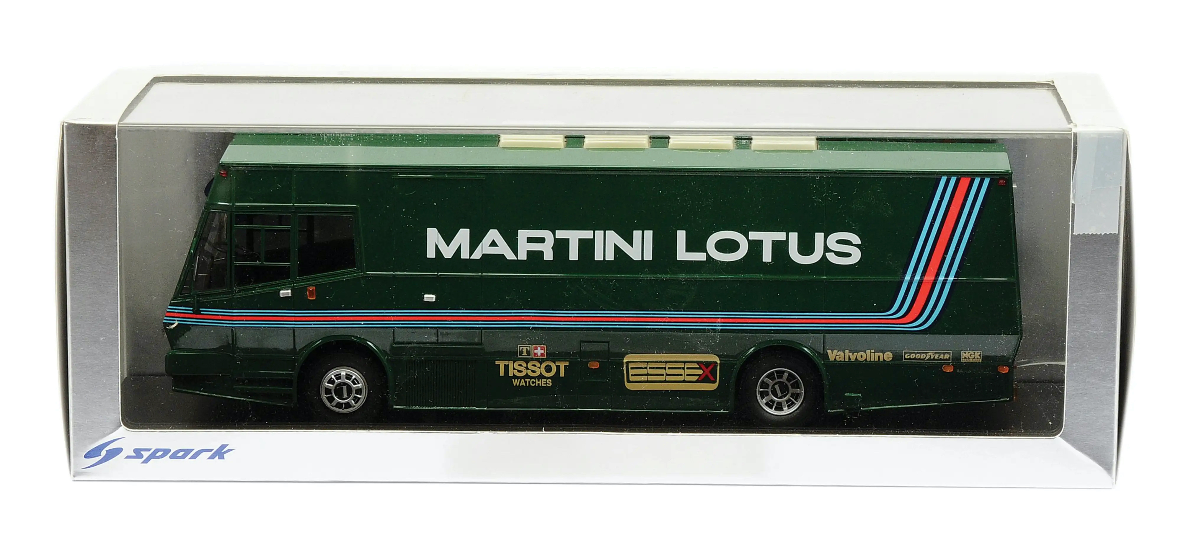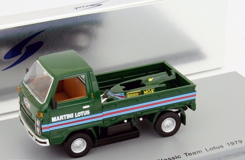 Spark (S2678) Echelle : 1/43 |  | Modèle : Lotus Leyland truck Ford Cosworth Année : 1979 Pilote : Mario Andretti / Carlos Reutemann  Version : Martini Lotus