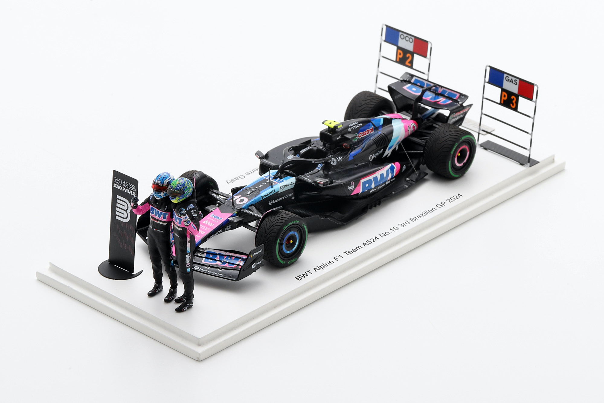 Spark (SP712) Echelle : 1/43 |  | Modèle : Alpine A524 Renault Année : 2024 Pilote : Pierre Gasly / Esteban Ocon  Version : 2nd and 3rd Brazilian GP Collection : Realwin Model Collection |