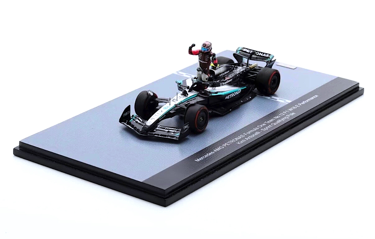 Spark (SP746) Echelle : 1/43 |  | Modèle : Mercedes W16 Mercedes Année : 2025 Pilote : Kimi Antonelli  Version : Sprint Qualifying Pole Miami GP Collection : Spark China Collection |