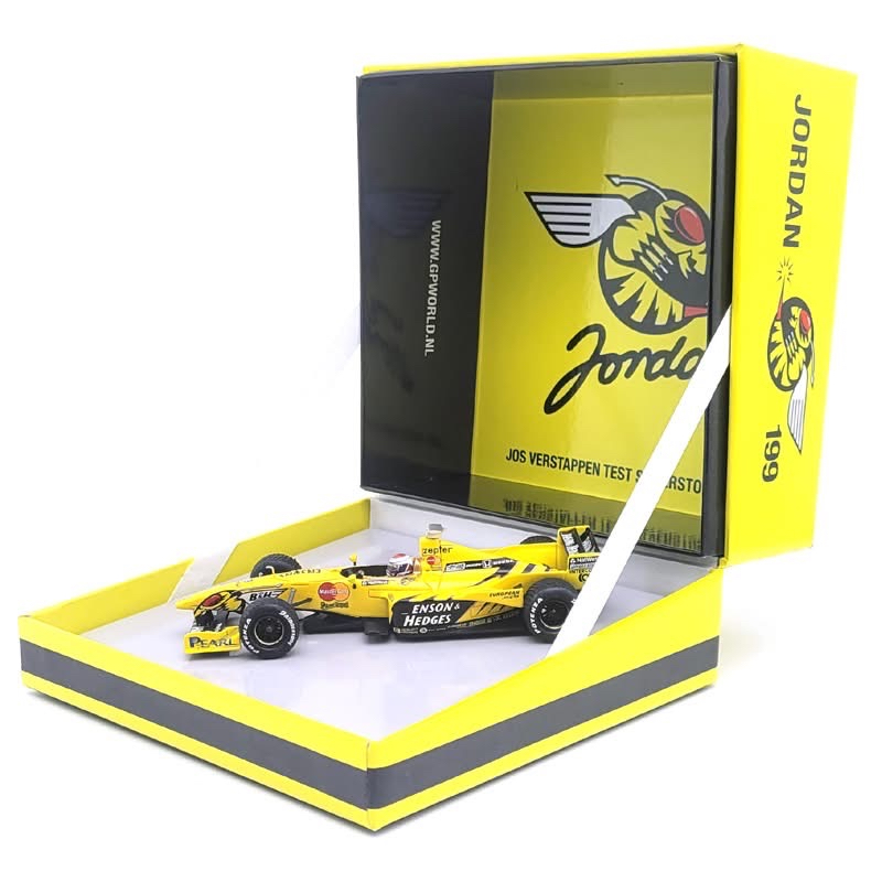 Spark (GPWS1999) Echelle : 1/43 |  | Modèle : Jordan 199 Mugen Année : 1999 Pilote : Jos Verstappen  Version : Silverstone test Ed. limitée : 300 ex. Collection : GP World Collection |