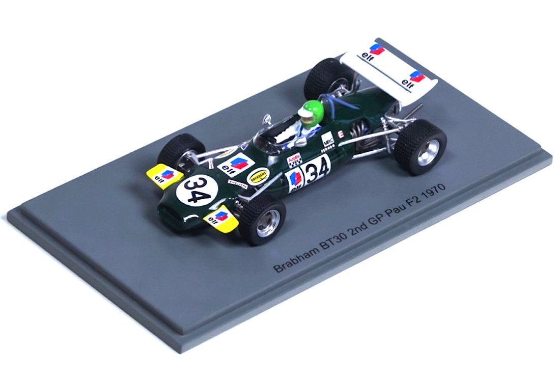 Spark (HP26) Echelle : 1/43 |  | Modèle : Brabham BT30 Ford Cosworth Année : 1970 Pilote : Henri Pescarolo  Version : 2nd GP Pau F2 Collection : Henri Pescarolo Collection |