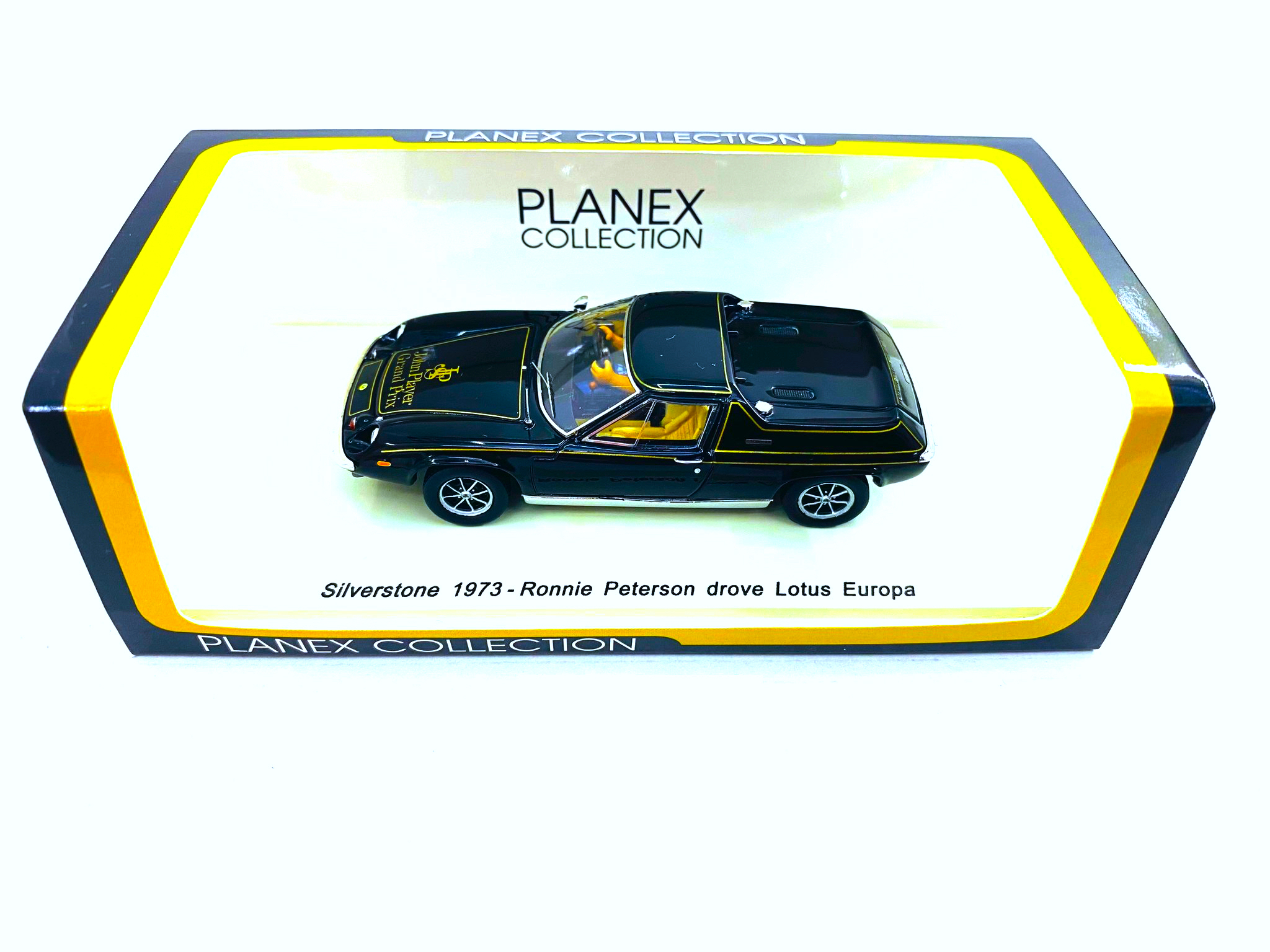 Spark (LOT-SPK-EURJPS) Echelle : 1/43 |  | Modèle : Lotus Europa Ford Cosworth Année : 1973 Pilote : Ronnie Peterson  Version : Silverstone Collection : Planex Collection |