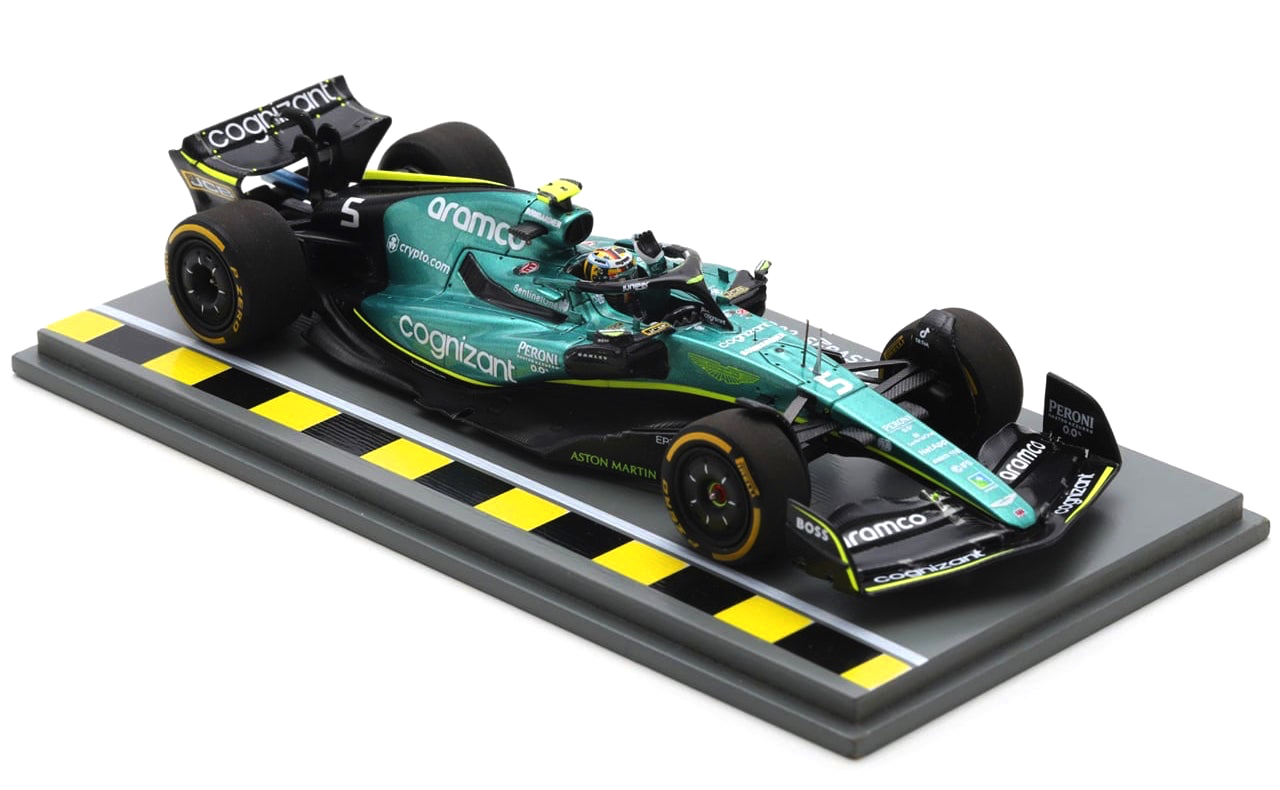 Spark (NKN13) Echelle : 1/43 |  | Modèle : Aston Martin AMR22 Mercedes Année : 2023 Pilote : Sebastian Vettel  Version : Turn 2 at Suzuka 2023 (Austrian GP 2022 ... Ed. limitée : 300 ex. Collection : 7.collection Collection |