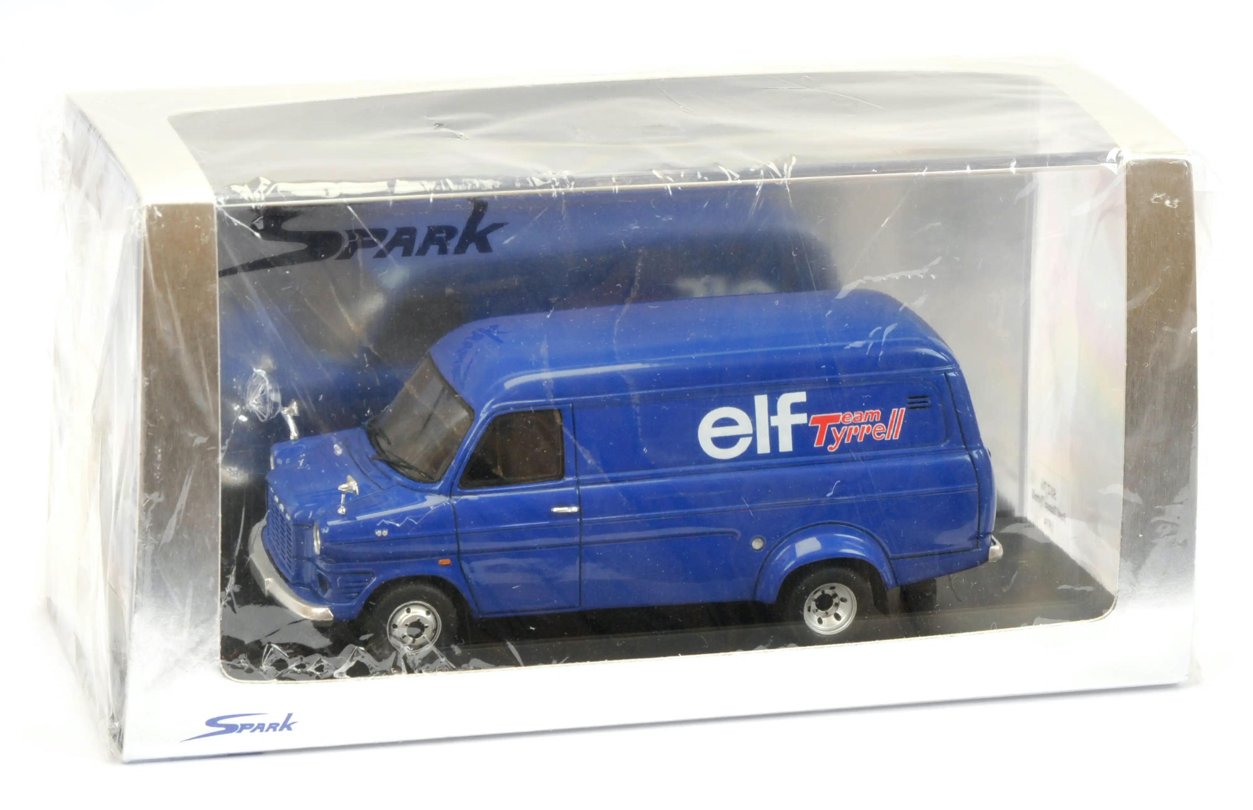 Spark (S0276) Echelle : 1/43 |  | Modèle : Tyrrell Ford Transit Ford Cosworth Année : 1974 Pilote : Jody Scheckter / Patrick Depailler  Version : Elf Team Tyrrell