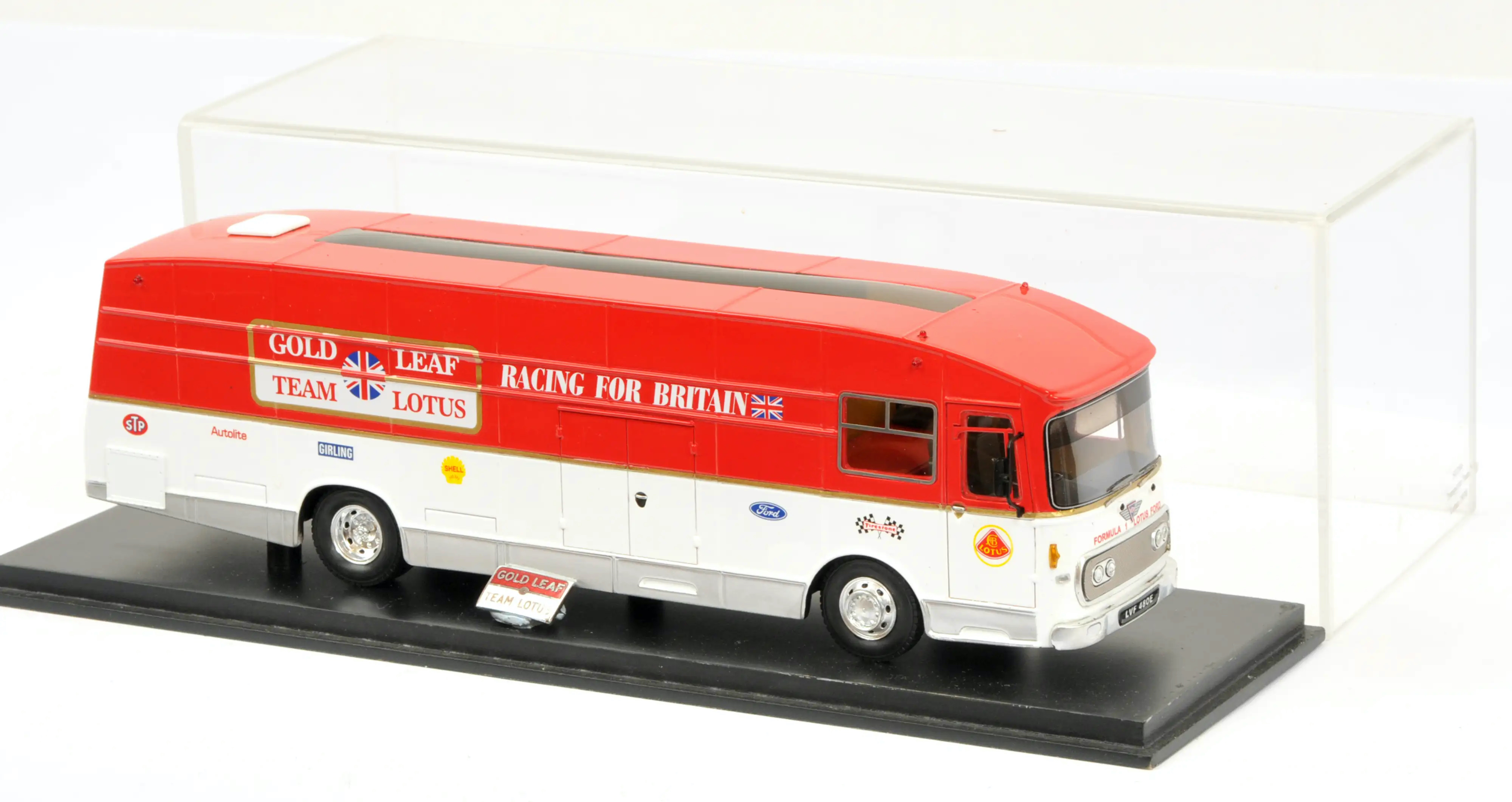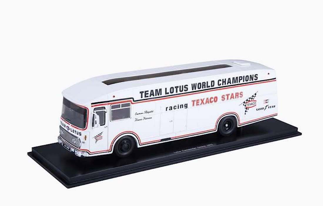 Spark (S1774) Echelle : 1/43 |  | Modèle : Lotus AEC truck Ford Cosworth Année : 1973 Pilote : Emerson Fittipaldi / Ronnie Peterson  Version : Texaco Star Team Lotus F2