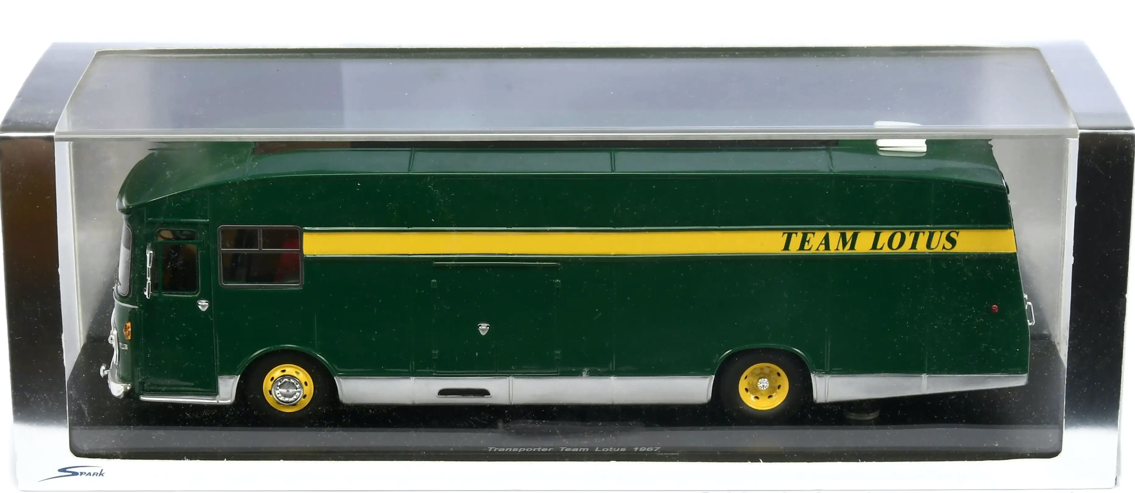 Spark (S2659) Echelle : 1/43 |  | Modèle : Lotus Bedford transporter Climax Année : 1963 Pilote : Jim Clark / Trevor Taylor  Version : Team Lotus