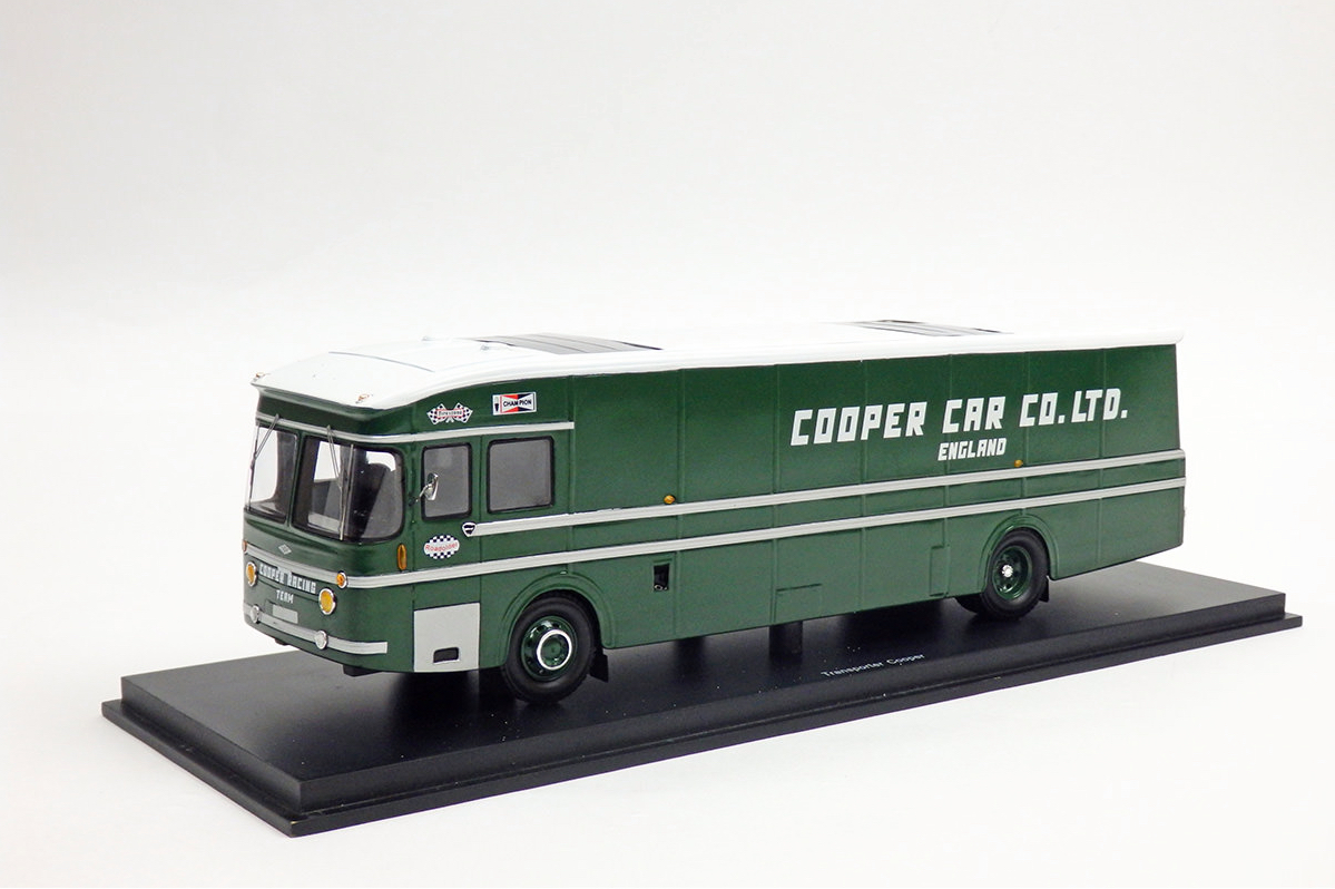 Spark (S0298) Echelle : 1/43 |  | Modèle : Cooper Leyland truck Ford Cosworth Année : 1967 Pilote : Jochen Rindt / Pedro Rodriguez  Version : Cooper Car