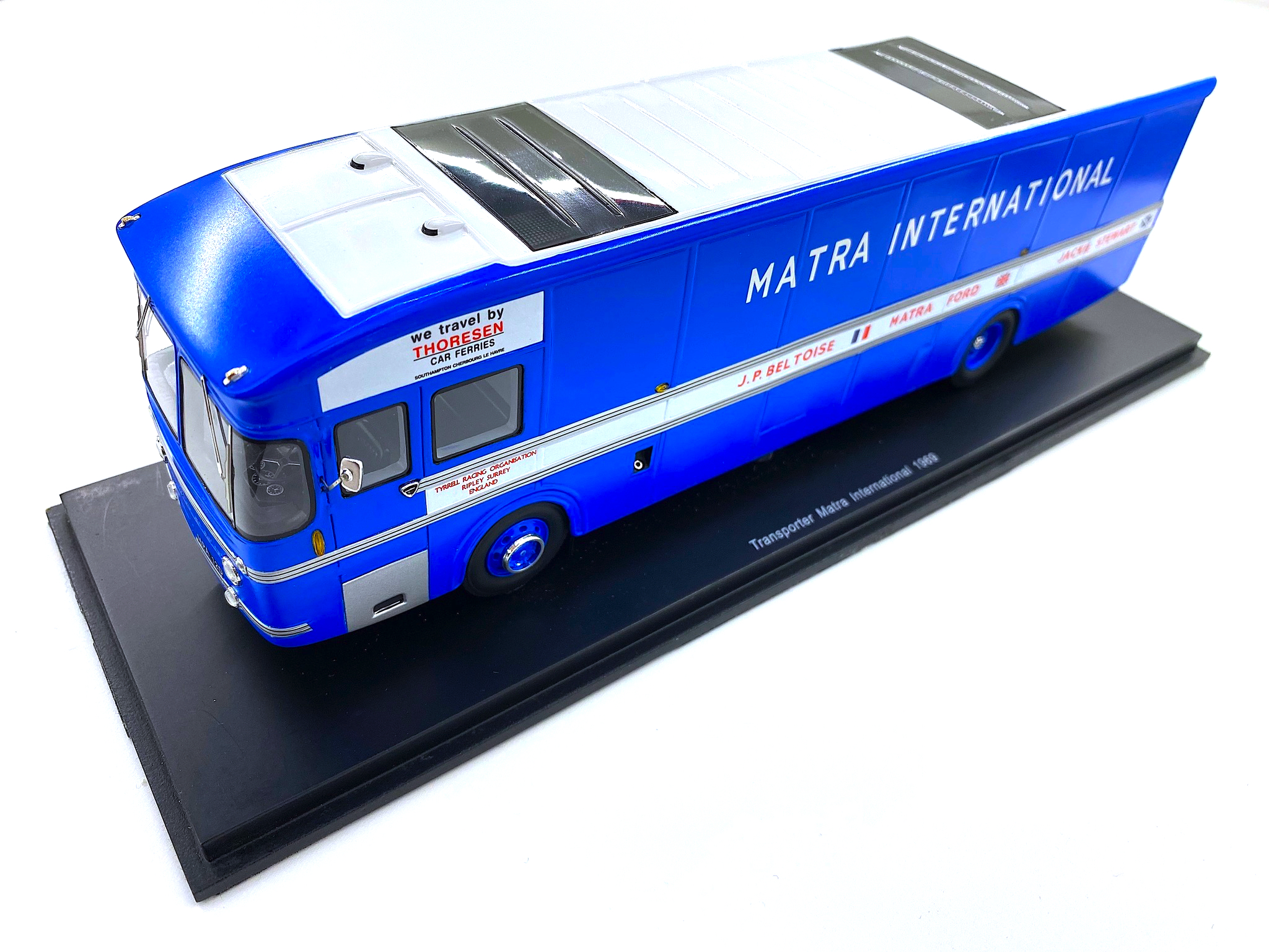 Spark (S1599) Echelle : 1/43 |  | Modèle : Matra Leyland truck Ford Cosworth Année : 1969 Pilote : Jackie Stewart / Jean Pierre Beltoise  Version : Matra International