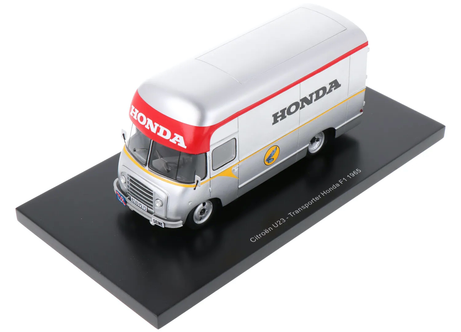 Spark (S5948) Echelle : 1/43 |  | Modèle : Honda Citroën U23 Honda Année : 1965 Pilote : Ronnie Bucknum / Richie Ginther  Version : Transporter Honda F1