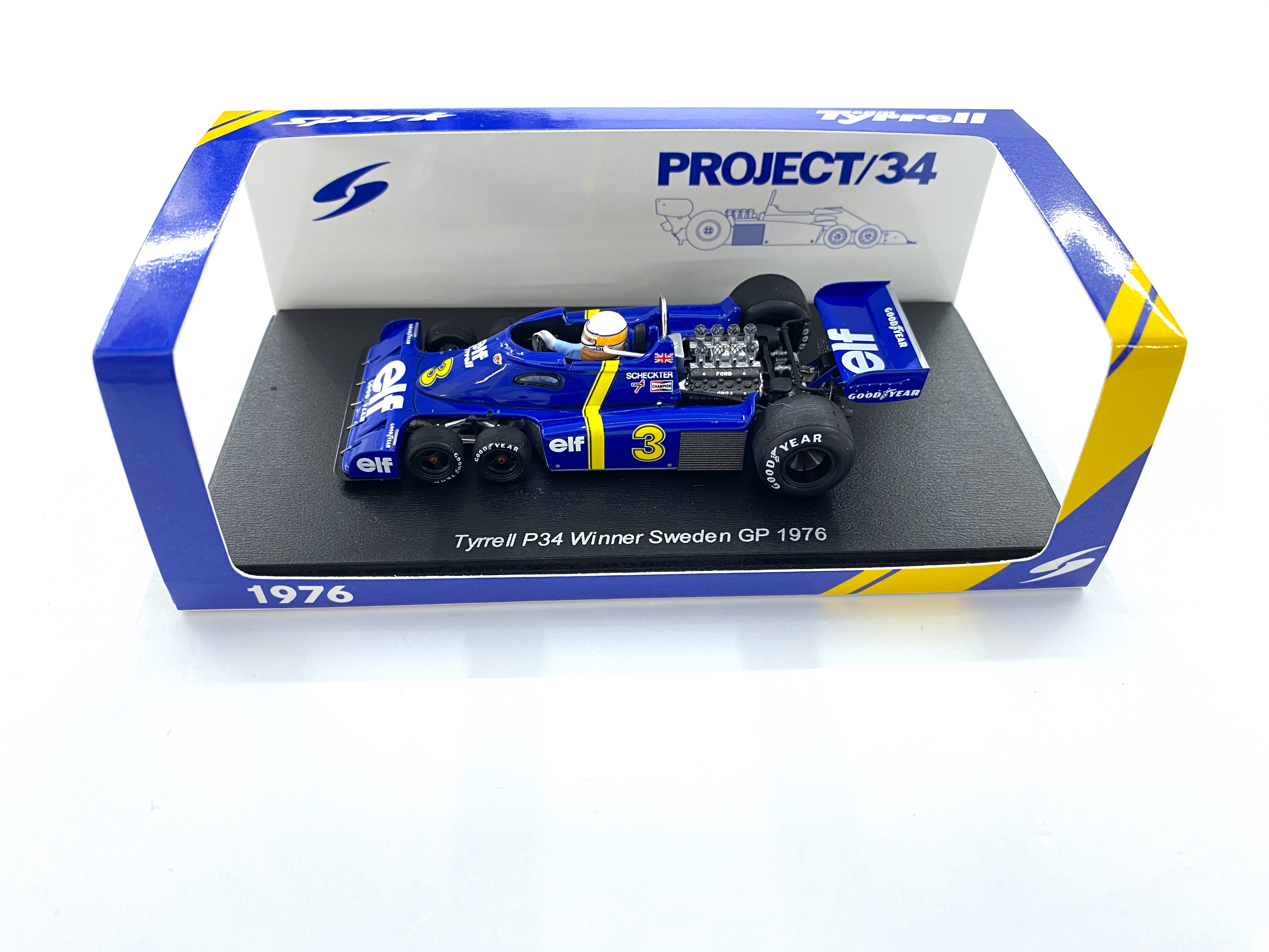 Spark (S7306) Echelle : 1/43 |  | Modèle : Tyrrell P34 Ford Cosworth Année : 1976 Pilote : Jody Scheckter  Version : Winner Swedish GP