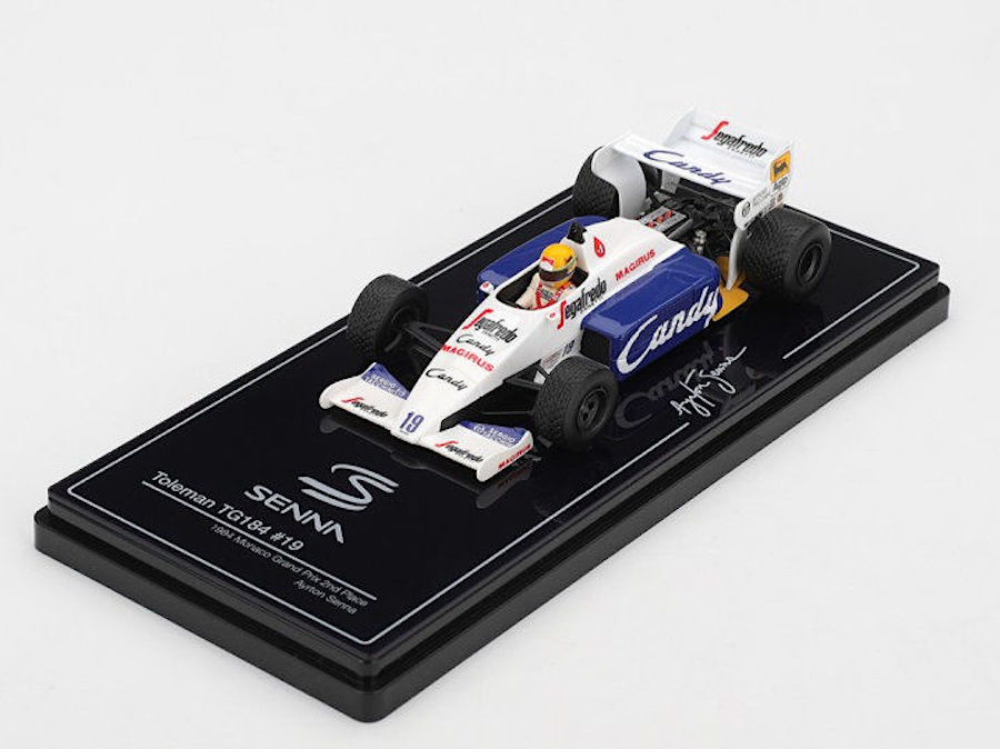 TSM-Model (TSM430909) Echelle : 1/43 |  | Modèle : Toleman TG184 Hart Année : 1984 Pilote : Ayrton Senna  Version : Monaco Grand Prix 2nd Place